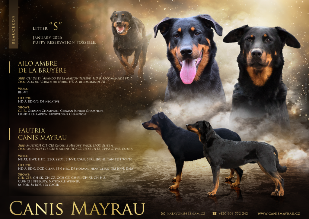 Jsme milovník psů zejména plemene Beauceron, proto jsem se rozhodla založit chovatelskou stanici, které se věnuji na plno. S mými psi jsme dosáhli mnoha titulů nejen v čr ale i ve světě. Každý rok máme několik vrhů a naše rodina se stále rozrůstá…